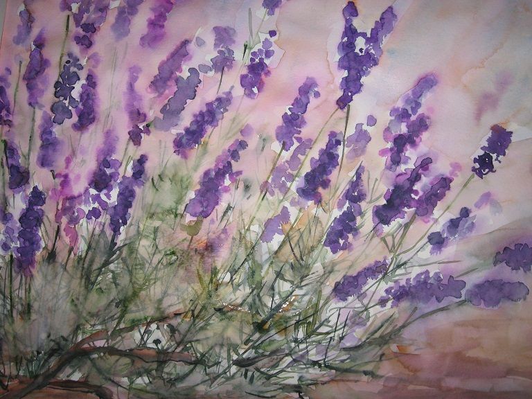 Aquarellmalerei, Aquarellbild Aquarell "Lavendel"
