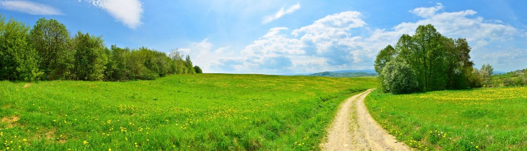 Eine grüne, sommerliche Landschaft. Auf der rechten Bildseite verläuft ein Weg geradeaus. ©Adobe Stock