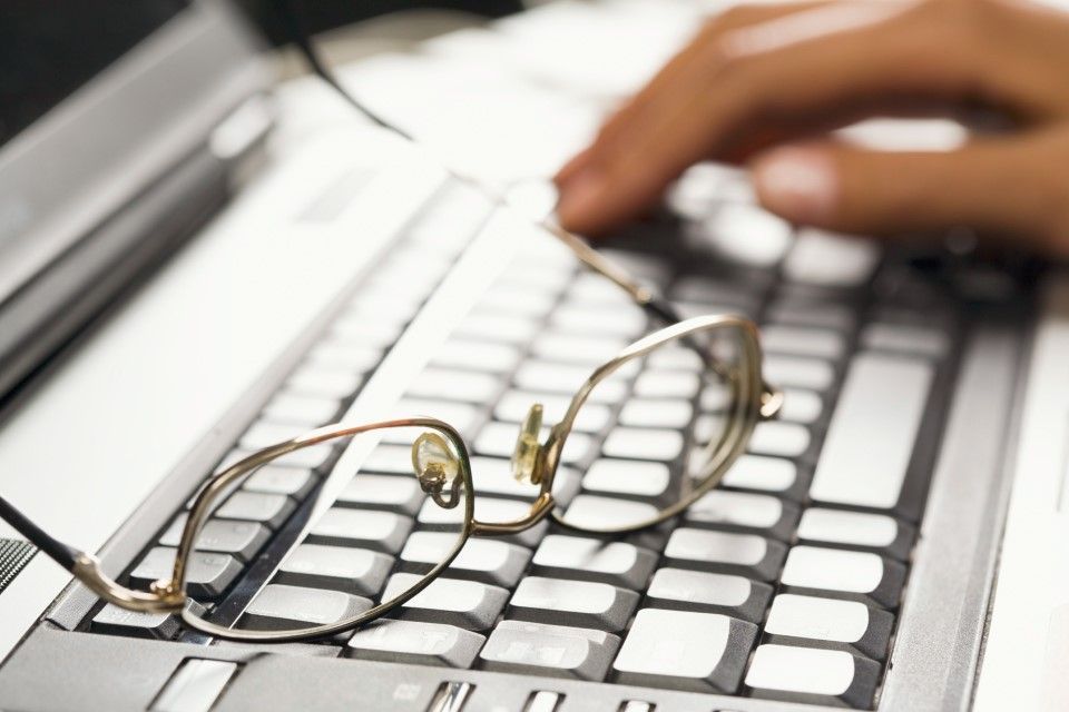 Brille auf Laptoptatstatur, im Hintergrund Hand. © pressmaster / stock.adobe.com